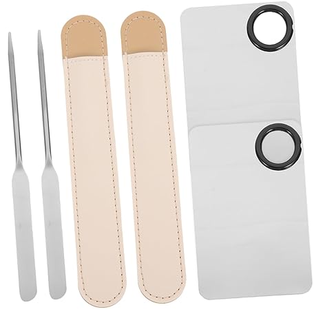 LIFKOME 2 Sätze Kosmetik Farb mischpalette aus Edelstahl mit Koreanischem Make up Spatel und Lederetui für Foundation Nagelkunst Lippenstift und Lidschatten Leicht und Tragbar