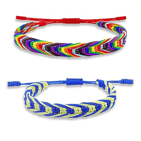 LINISITING Bohemian Woven Bracelets, Pack of 2 Handmade Adjustable Friendship Bracelets, Tibet Style Bracelet, Woven Bracelets for Women, Men, Children, Boys