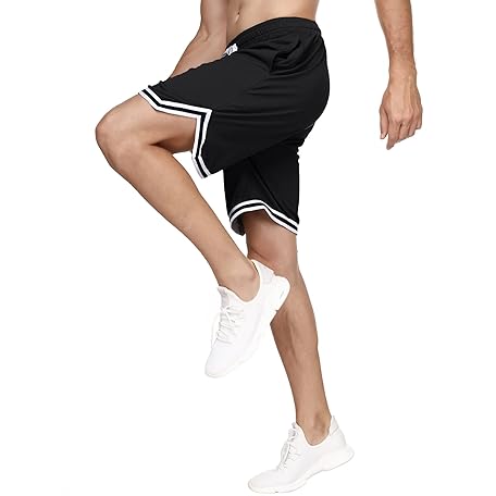 Thông tin sản phẩm Litherday Shorts Herren Sportshorts Kurz Hosen Streifen Jogginghose Sommer Traininghose mit Taschen Elastischer Bund und Atmungsaktive Shorts zum Fitness, Running, Gym, Basketball, Schwarz, M