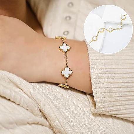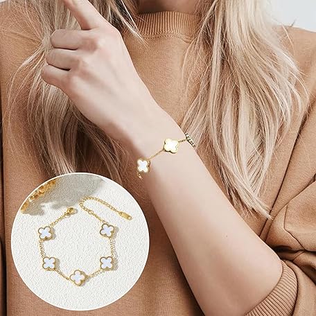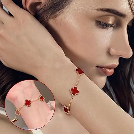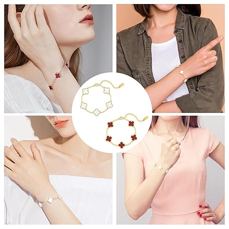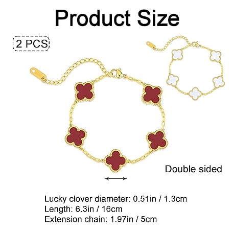 Thông tin sản phẩm LIURFLNC Pack of 2 Clover Bracelets, Simple Design Style Lucky Clover Jewellery, Fashionable Exquisite Friendship Bracelet, Lucky Jewellery for Women and Girls (White + Red), One size, Metal, No