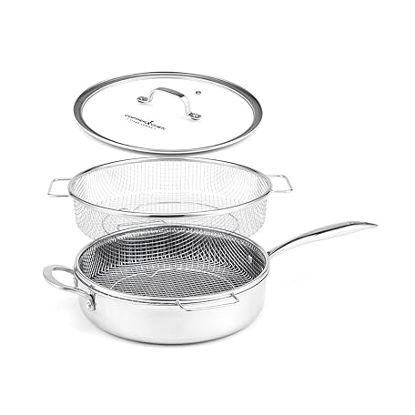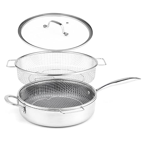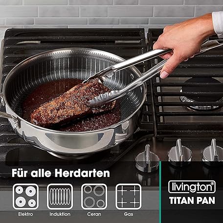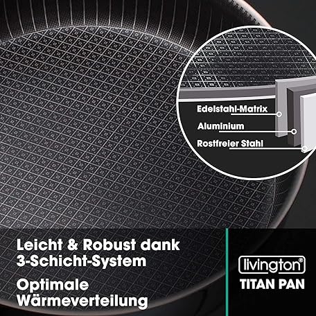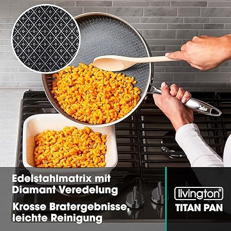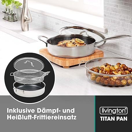 Sản phẩm LIVINGTON Titan Pan Pfanne – beschichtete Edelstahl Pfanne 24cm mit Diamant-Antihaft-Veredelung – backofenfeste Hochrandpfanne für alle Herdarten - inkl. Frittierkorb đang được bán với giá ưu đãi là $75.7986 tại nước Đức.