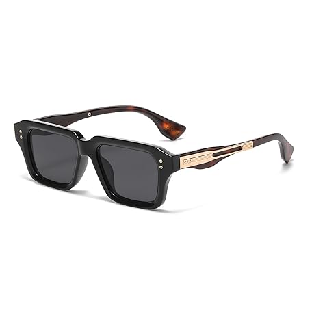 LJCZKA Retro Rechteckig Dicker Sonnenbrille für Damen Herren Trendy 90s Chunky Quadratisch Sonnenbrille Metall Rahmen Mode UV400 Schutz