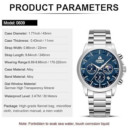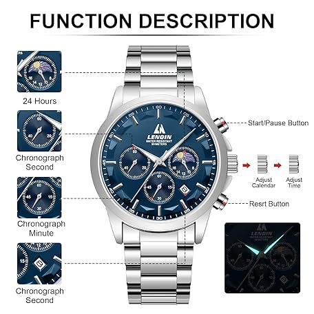 Thương hiệu LN LENQIN là cái tên nổi tiếng được rất nhiều khách hàng trên thế giới chọn lựa. Với kiểu dáng đẹp mắt, sang trọng, sản phẩm LN LENQIN Men's Watch Watches Men's Chronograph Stainless Steel Waterproof for Men Analogue Quartz Wristwatches Business Work Men's Dress Watch Gifts là sự lựa chọn hoàn hảo nếu bạn đang tìm mua một món cho riêng mình.