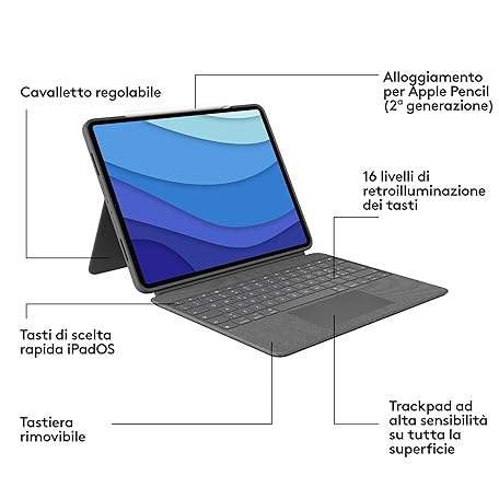 Thông tin sản phẩm Logitech Combo Touch Keyboard Case for iPad Pro 12.9 Inch (January 5 - 2021) - Removable Backlit Keyboard, Click-Anywhere Trackpad, Smart Connector - Italian Keyboard