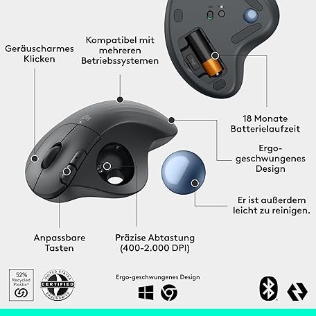 Sản phẩm Logitech ERGO M575S Wireless Trackball Mouse, Wireless Ergonomic Mouse with Bluetooth and Encrypted Dongle, Comfortable Thumb Control, for PC/Mac - Graphite đang được bán với giá ưu đãi là $43.9161 tại nước Đức.