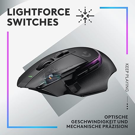 • Logitech G 502 X PLUS LIGHTSPEED Wireless RGB Gaming Mouse - Optical Mouse with Lightforce Hybrid Switches, Lightsync RGB, Hero 25K Gaming Sensor, Compatible with PC - macOS/Windows - Black