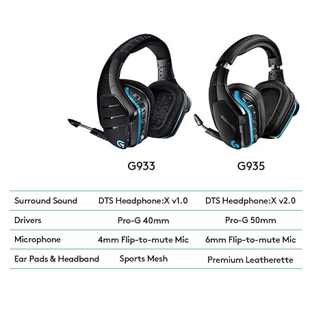 Thông tin sản phẩm Logitech G 935 Wireless Gaming Headphones with 7.1 Surround Sound, 50mm Pro-G Sound Driver, LYGHTSYNC RGB) (Refurbished)