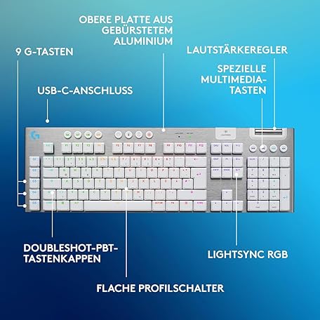 Sản phẩm Logitech G G915 X LIGHTSPEED Low Profile Wireless Gaming Keyboard, Double Shot PBT Keycaps, Fully Programmable Keys, RGB Backlight, GL Brown Tactile, PC/Mac, DEU QWERTZ - White đang được bán với giá ưu đãi là $213.6182 tại nước Đức.