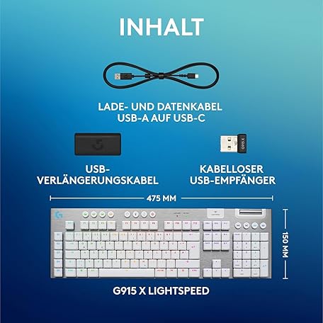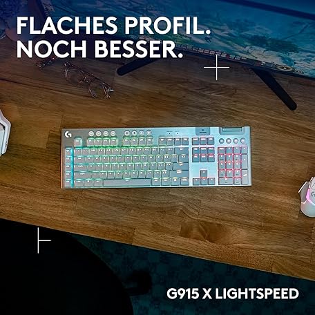 Thông tin sản phẩm Logitech G G915 X LIGHTSPEED Low Profile Wireless Gaming Keyboard, Double Shot PBT Keycaps, Fully Programmable Keys, RGB Backlight, GL Brown Tactile, PC/Mac, DEU QWERTZ - White