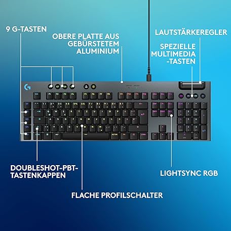 Sản phẩm Logitech G G915X Flat Wired Mechanical Gaming Keyboard with Double Shot PBT Keycaps, Fully Programmable Keys, Brown Tactile GL Switches for PC/Mac, DEU QWERTZ Layout - Black đang được bán với giá ưu đãi là $176.9724 tại nước Đức.