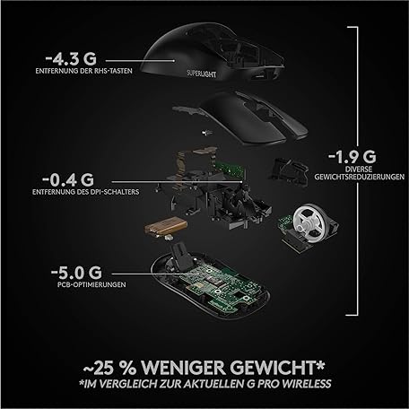 Sản phẩm Logitech G PRO X SUPER LIGHT wireless gaming mouse with HERO 25K sensor, ultra-lightweight with 63g, 5 programmable buttons, up to 70 hours of battery life, incl. Zero additives PTFE Feet, PC / Mac, Black đang được bán với giá ưu đãi là $138.6807 tại nước Đức.