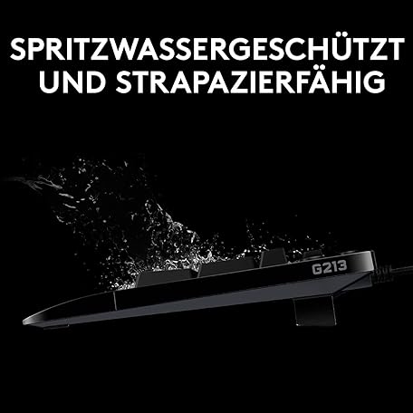 Thông tin sản phẩm Logitech G213 Gaming Keyboard Prodigy, RGB lighting, programmable G-keys, multimedia controls, integrated palm rest, splashproof, German QWERTZ layout, Black