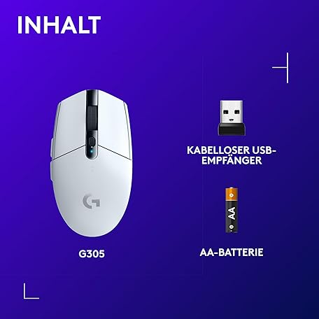 Sản phẩm Logitech G305 LIGHT SPEED wireless gaming mouse, HERO 12000 DPI sensor, 6 programmable keys 250 hours of battery life, Customizable game profiles, lightweight, PC / Mac, white - German Packaging đang được bán với giá ưu đãi là $61.9338 tại nước Đức.