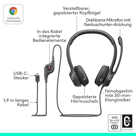 Sản phẩm Logitech H390 Wired Headset for PC Notebook Stereo Headphones with Noise Cancelling Microphone Stereo Wired Controls Works with Chromebook - BLACK đang được bán với giá ưu đãi là $49.2789 tại nước Đức.