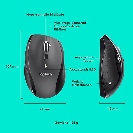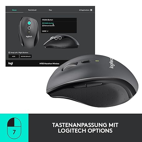 Sản phẩm Logitech M705 Marathon wireless mouse, eco-friendly packaging, 2.4 GHz connection via Unifying USB receiver, 1000 DPI laser sensor, 3-year battery life, 7 buttons, PC / Mac - gray đang được bán với giá ưu đãi là $27.6097 tại nước Đức.