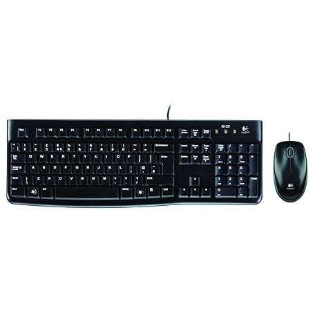 Logitech MK120 Wired keyboard mouse set, optical mouse, USB port, PC / laptop, Spanish QWERTY layout - Black