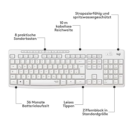 Sản phẩm Logitech MK295 wireless keyboard mouse set with Silent Touch technology, shortcut buttons, optical tracking, nano USB receiver, delay-free wireless connection, QWERTZ layout-White đang được bán với giá ưu đãi là $37.932 tại nước Đức.
