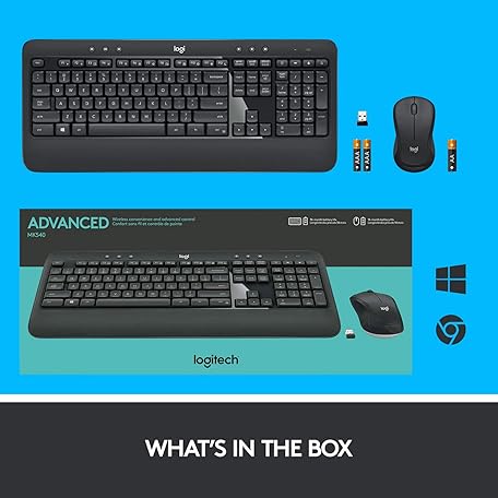 Thông tin sản phẩm Logitech MK540 Advanced Wireless keyboard mouse set, 2.4 GHz wireless connection via USB Unifying receiver, 3-year battery life, Windows and ChromeOS PC / laptop, Dutch QWERTY layout
