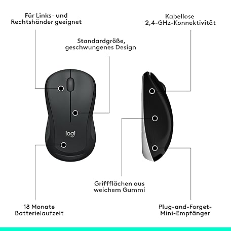 Thông tin sản phẩm Logitech MK540 Advanced Wireless keyboard mouse set, 2.4 GHz wireless connection via USB Unifying receiver, 3-year battery life, Windows and ChromeOS PC / laptop, German QWERTZ layout