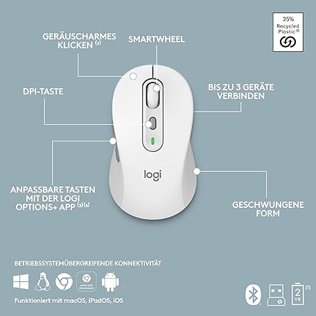 Sản phẩm Logitech MK950 Signature Slim Wireless Keyboard Mouse Set, Slim Design, Quiet Typing, Switching Between Three Devices, Bluetooth, Multiple Operating Systems, Windows and Mac, DEU QWERTZ Layout, White đang được bán với giá ưu đãi là $112.9131 tại nước Đức.