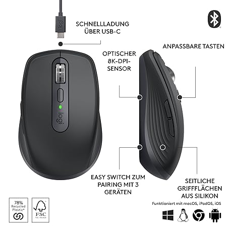Sản phẩm Logitech MX Anywhere 3S Compact Wireless Mouse, Fast Scrolling, 8K DPI Any-Surface Tracking, Quiet Clicks, Programmable Buttons, USB C, Bluetooth, Windows PC, Linux, Chrome, Mac - Graphite đang được bán với giá ưu đãi là $84.5404 tại nước Đức.
