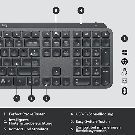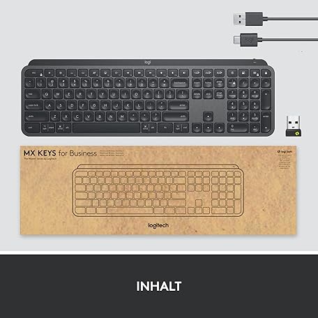 Thông tin sản phẩm Logitech MX Keys for Business Wireless Keyboard with Key Lighting, Quiet Keys Perfect Stroke, Logi Bolt, Bluetooth, Rechargeable, Windows/Mac/Chrome/Linux, German QWERTZ Layout - Graphite