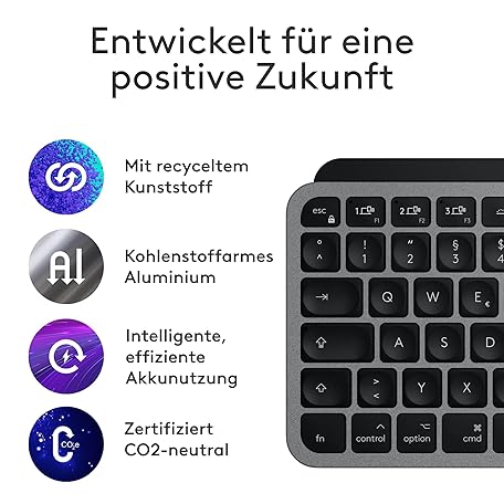 Thương hiệu Logitech là cái tên nổi tiếng được rất nhiều khách hàng trên thế giới chọn lựa. Với kiểu dáng đẹp mắt, sang trọng, sản phẩm Logitech MX Keys Mini for Mac – minimalistische kabellose Tastatur für MacBook Pro, MacBook Air, iMac, iPad, Bluetooth, Tasten mit Hintergrundbeleuchtung, USB-C, flüssiges Tippen, DEU QWERTZ - Grau là sự lựa chọn hoàn hảo nếu bạn đang tìm mua một món cho riêng mình.