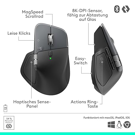 Sản phẩm Logitech MX Master 4 Ergonomic Wireless Mouse with Advanced Powerful Haptic Feedback, Ultra Fast Scrolling, Charging via USB-C, Bluetooth, Windows, MacOS - Graphite đang được bán với giá ưu đãi là $165.0696 tại nước Đức.