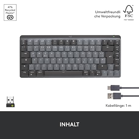 Thông tin sản phẩm Logitech MX Mechanical Wireless Mini Keyboard with Lighting, Tactile Silent Keys, Backlight, Bluetooth, USB-C, MacOS, Windows, Linux, iOS, Android, Metal, German QWERTZ - Grey