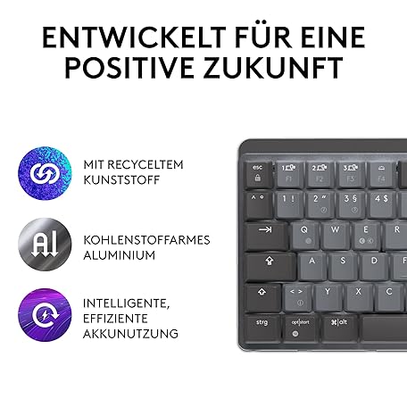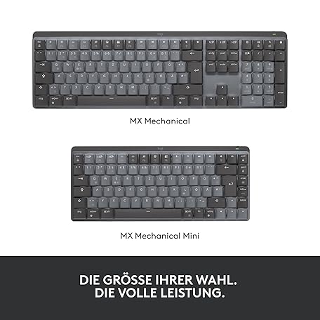 Sản phẩm Logitech MX Mechanical Wireless Mini Keyboard with Lighting, Tactile Silent Keys, Backlight, Bluetooth, USB-C, MacOS, Windows, Linux, iOS, Android, Metal, German QWERTZ - Grey đang được bán với giá ưu đãi là $147.7168 tại nước Đức.