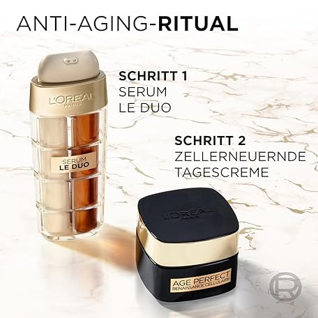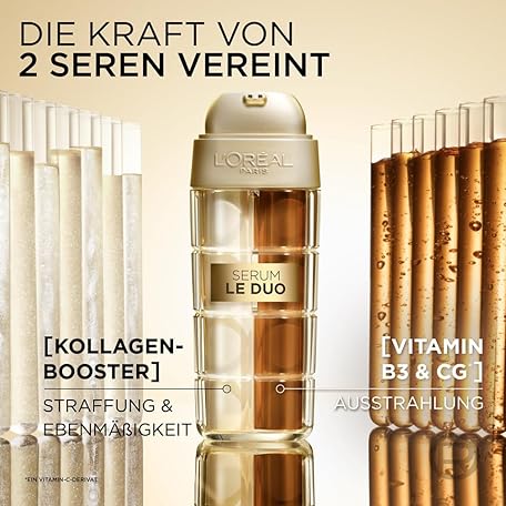 Thông tin sản phẩm L'Oréal Paris Age Perfect Serum Le Duo – Anti-Aging Pflege, mit Kollagen Peptid, Vitamin B3 und CG, glättend und gegen 10 Zeichen der Hautalterung, revitalisierendes 2 in 1 Gesichtsserum, 1 x 30 ml