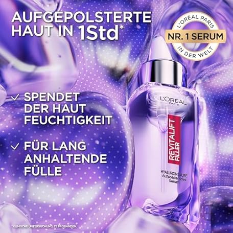 Thông tin sản phẩm L'Oréal Paris Aufpolsterndes Serum: für Faltenminderung & jugendlich und praller aussehende Haut mit [1,5% Hyaluronsäure], Gesichtsserum, Revitalift Filler, 1 x 30 ml