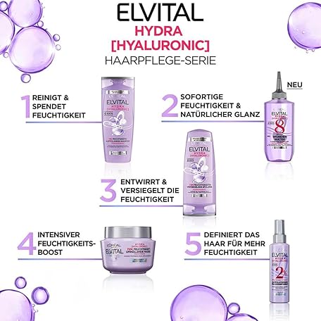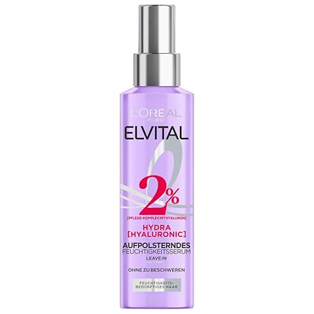 Thông tin sản phẩm L'Oréal Paris Elvital Hydra Hyaluronic feuchtigkeitsspendende Spray Kur für glänzendes Haar, Hyaluron Serum für einen Feuchtigkeitsboost, Schutz & Glanz, langanhaltende Feuchtigkeit und Pflege, 150ml
