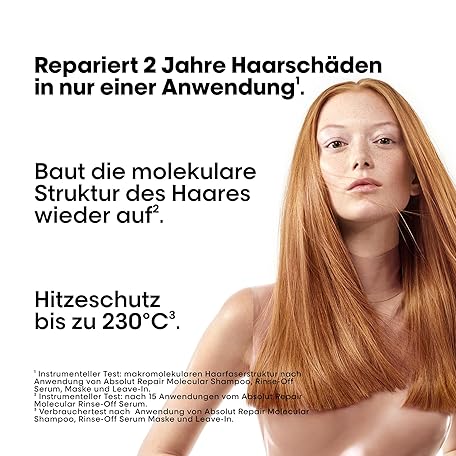 Thông tin sản phẩm L'Oréal Professionnel Leave-In für strukturgeschädigtes Haar, Zur molekularen Tiefenreparatur, Mit Peptidbondern und 5 Aminosäuren, Hitzeschutz, Serie Expert, Absolut Repair Molecular