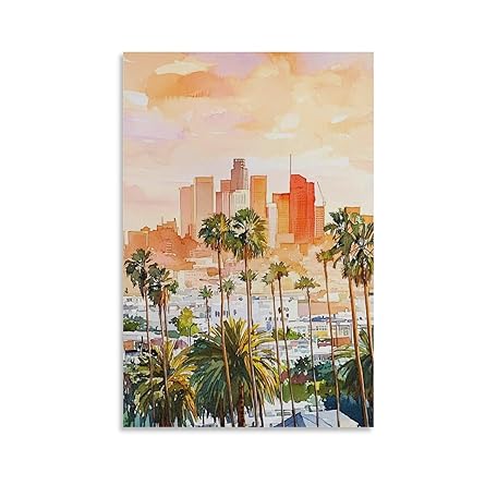 Los Angeles Sonnenuntergang Palme, Stadt, Skyline, Kalifornien, moderne Wandkunst, Gemälde, Leinwanddrucke, Poster, Kunstwerk für Wohnzimmer, Schlafzimmer, Badezimmer, Büro, Heimdekoration, 50 x 75 cm
