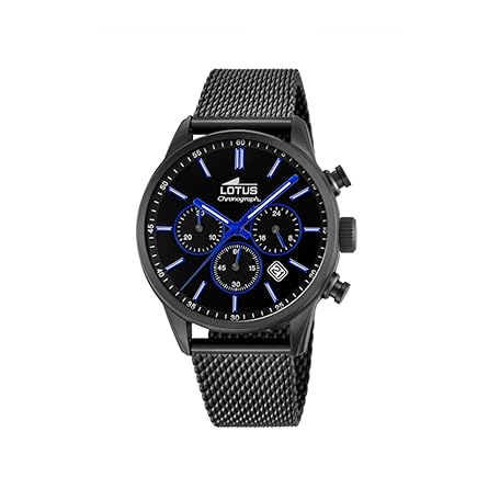 Lotus Herren Analog Uhr Edelstahl 316L Schwarz - Quarz - Chronograph - Kalender - Mineralglas - 5 ATM Wasserdicht Casual 18700/3 Chrono