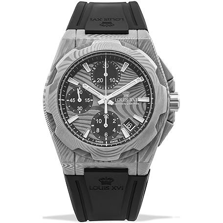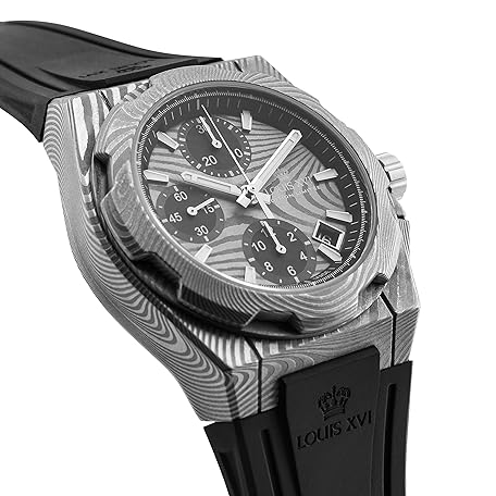 Sản phẩm LOUIS XVI La Vauguyon Damascus Men's Watch with Black Steel and Rubber Strap Super-LumiNova Chronograph Analogue Automatic 1201, Strap. đang được bán với giá ưu đãi là $1957.3784 tại nước Đức.
