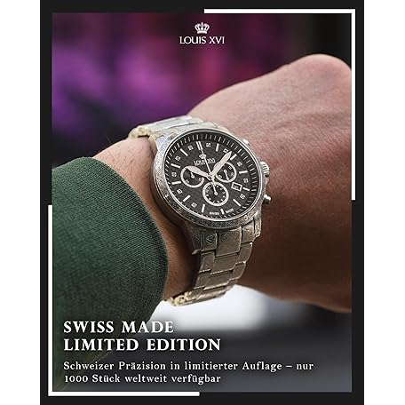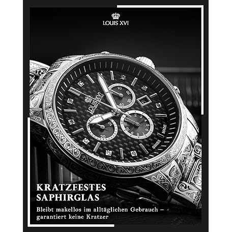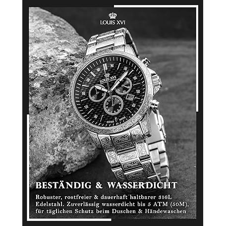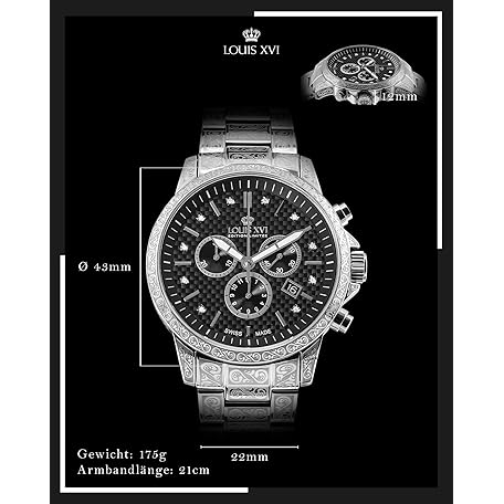 Sản phẩm LOUIS XVI Palais Royale - Diameter 43 mm - Men's Watch - Waterproof - Watch with Sapphire Glass - Gold/Silver/Black - Black Dial - Swiss Quartz Movement đang được bán với giá ưu đãi là $569.416 tại nước Đức.