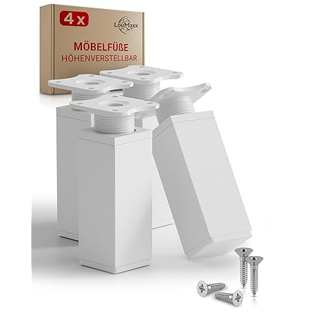 Sản phẩm LouMaxx Furniture Feet Adjustable Square - Set of 4 40 x 40 x 100 mm in White with Mounting Plate - Feet for Furniture Made of Aluminium - High-Quality Cabinet Feet for Individual DIY Furniture đang được bán với giá ưu đãi là $20.2958 tại nước Đức.