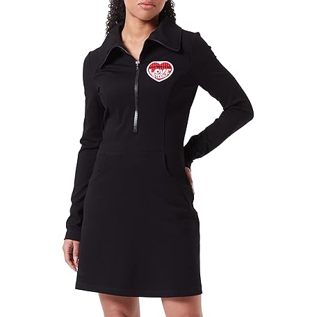 Love Moschino Damen Long-Sleeved Customized with Embroidered Storm Heart Patch Dress, Schwarz, 40 EU