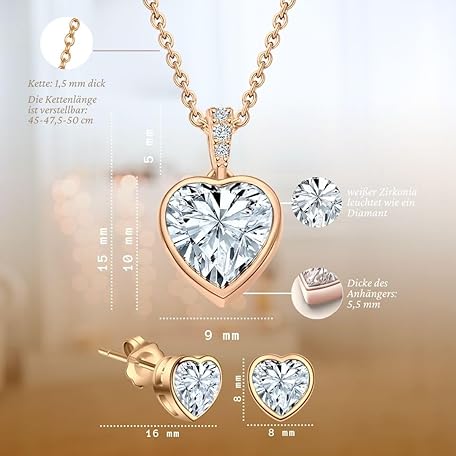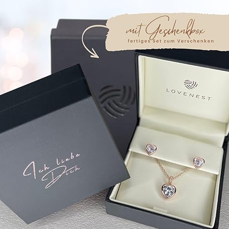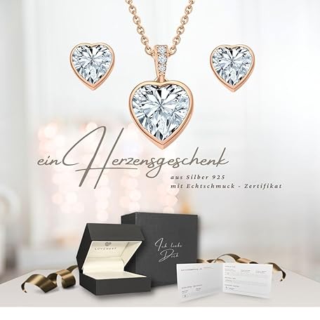 Sản phẩm LOVENEST Women's Jewellery Set 925 Silver / Rose Gold Cubic Zirconia Heart Jewellery Set 3-Piece for Christmas Birthday Wedding Anniversary Necklace and Earrings Set High Quality Gift Wife Wife đang được bán với giá ưu đãi là $162.9441 tại nước Đức.