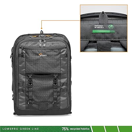 Thông tin sản phẩm Lowepro Pro Trekker BP 450 AW II, Camera Bag, Backpack with Recycled Fabric, Fits 15 Inch Laptop or Tablet, Maxfit Dividers, Weatherproof Cover, Mirrorless DSLR Case, Black Dark Grey, LP37269-GRL Lowepro Pro Trekker BP 450 AW II, Camera Bag, Backpack with Recycled Fabric, Fits 15 Inch Laptop or Tablet, Maxfit Dividers, Weatherproof Cover, Mirrorless DSLR Case, Black Dark Grey, LP37269-GRL
