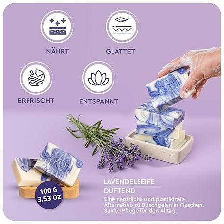 Sản phẩm lubiu Lavender Soap Piece 100 g - Organic Soap Lavender Handmade - Shower Soap Without Palm Oil and Hand Soap Solid - Natural Soap Piece - Natural Soap đang được bán với giá ưu đãi là $8.938 tại nước Đức.