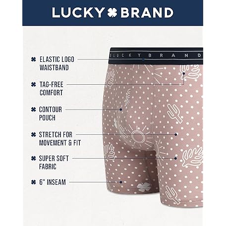 Thương hiệu Lucky Brand là cái tên nổi tiếng được rất nhiều khách hàng trên thế giới chọn lựa. Với kiểu dáng đẹp mắt, sang trọng, sản phẩm Lucky Brand Mens Boxer Shorts Super Soft Stretch Mens Underwear Boxer Shorts No Fly 6 Pack là sự lựa chọn hoàn hảo nếu bạn đang tìm mua một món cho riêng mình.