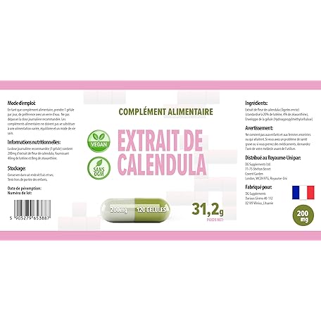 Thông tin sản phẩm Lutein 40 mg with Zeaxanthin 8 mg from Marigold Extract 120 Vegan Capsules 200 mg, Laboratory Tested by Agrolab Germany, Eyes and Vision Support