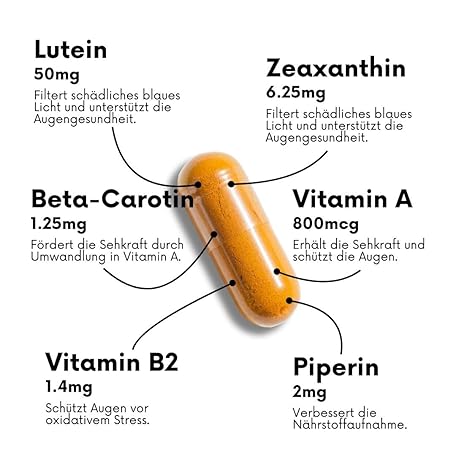 Sản phẩm Lutein 50 mg with Zeaxanthin, Beta Carotene, Vitamin A & B2, Piperine, 365 Capsules, Eye Health & Blue Light Protection, Genetic Engineering & Gluten-Free nutrive pharma đang được bán với giá ưu đãi là $48.1889 tại nước Đức.