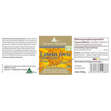 Sản phẩm Lutein Forte according to Dr. Michalzik - No Additives 25 mg Pure Lutein per Capsule of BIOTIKON® đang được bán với giá ưu đãi là $25.2771 tại nước Đức.