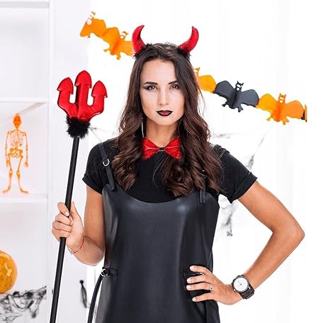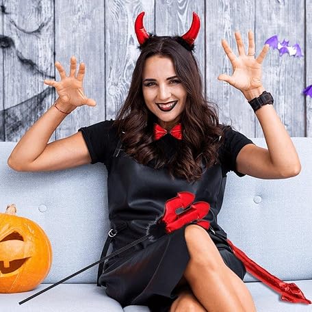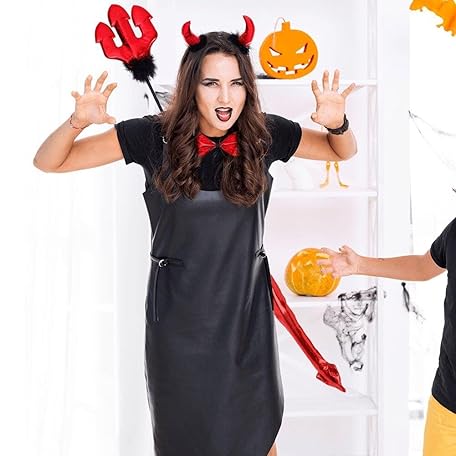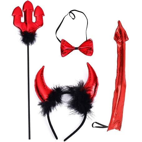 Thông tin sản phẩm Luxylei Halloween-Teufel-kostüm-Set, 4-teilig, Teufelshorn-Stirnband, Teufel-Pitchfork-Fliege, Biegsamer Schwanz, Cosplay-zubehör