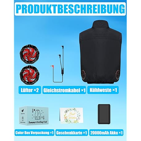 Sản phẩm Lvkakmox Cooling Vest with 21 V 20000 mAh Battery and 2 Brushless Fans - Cooling Fan Vest for Men and Women đang được bán với giá ưu đãi là $115.54 tại nước Đức.