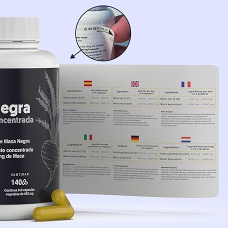 Maca Black High Dose 40,000 mg - 140 Vegan Capsules | Ultra Concentrated 20:1 Extract | 5 Months | Increases Energy and Vitality | Laboratory Tested | Improves Performance, Memory and Mood